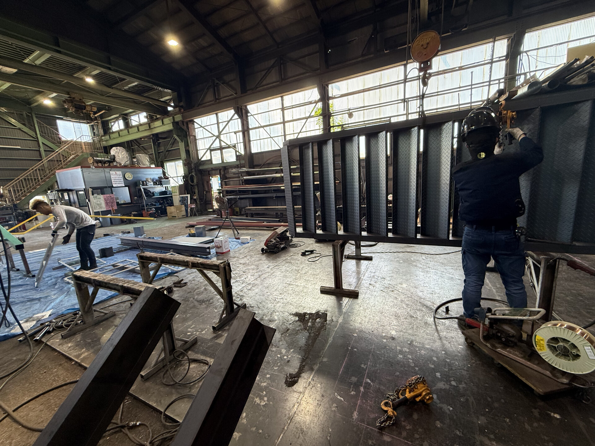 現場は揚程が低いうえ、狭い設置個所でしたので、チェーンブロック等を駆使して納めさせていただきました。